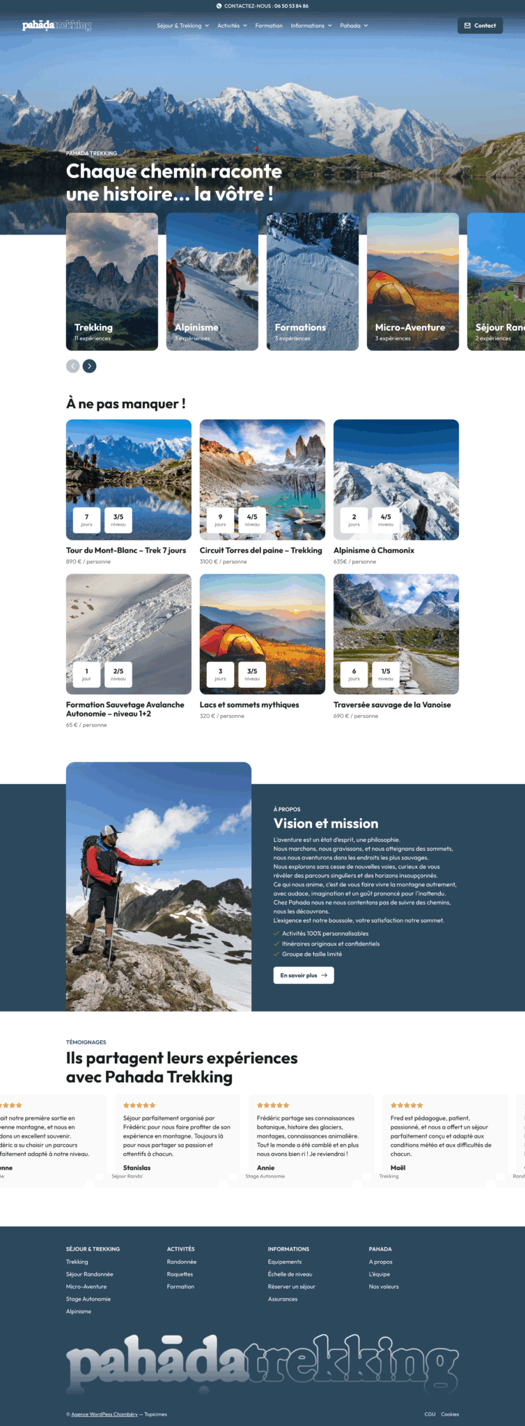 Le site de Pahada Trekking est basé sous WordPress avec un fort attachement à véhiculer de nombreuses images de paysages, tout au long du parcours utilisateurs afin d’inciter au voyage.